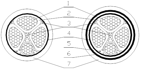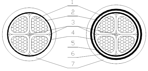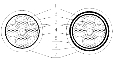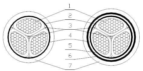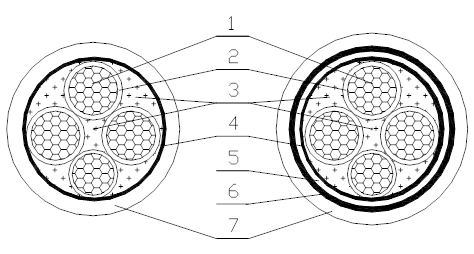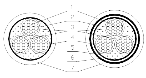 导体 2 绝缘 3填充 4 包带 5 内衬层 6 钢带 7 外护套